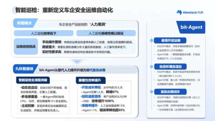 扎实的商业落地成果印证了bit-Agent的实用价值。目前,bit-Agent已在制造、金融、能源等多个领域形成标杆案例。在某上市企业的安全巡检项目中,bit-Agent被应用于旗下100多家企业,不仅有效减少了人工巡检所带来漏检、误检等问题,更大幅提升了巡检效率。该案例让bit-Agent成为了国内首个实现商业化落地的GUIAgent,被视为行业标杆案例。